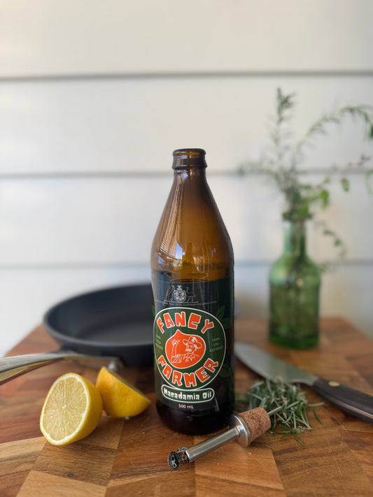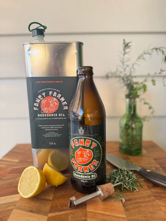 The Fancy Farmer macadamia oil is great - so far have used it for stir fries, shallow frying and in a cake with excellent results. Comes in a neat slimline tin, and we splashed out on both the plastic squeeze bottle and the glass one. Both seem very good quality. We will be regular customers!